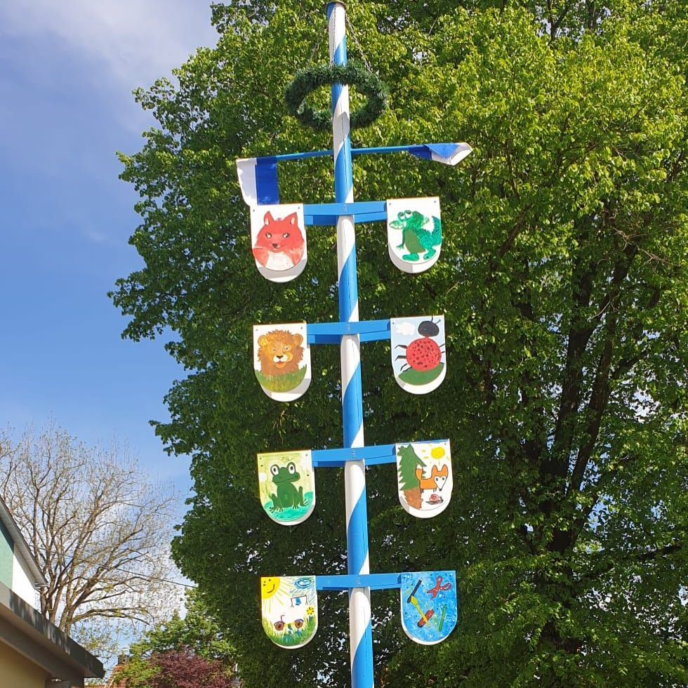 Auch das Kinderhaus Amperzwerge in Schöngeising hält an feierlichen Traditionen fest und so wurde dieses Jahr, musikalisch begleitet von der Jugendblaskapelle Schöngeising, nach fünf Jahren wieder ein neuer Maibaum aufgestellt. Die Kinder hatten hierfür, gemeinsam mit ihren Eltern, voller Eifer 18 Maibaum-Tafeln bemalt und zusammen mit den Erziehern eine hübsche Festdekoration gebastelt. Der Wettergott meinte es gut mit den Amperzwergen, die in Dirndl und Lederhose in den Garten des Kinderhauses einzogen und mit dem Lied „Aber Griaß Di - I hob Di so gern“ und einem Volkstanz ihre Familien begeisterten. Anschließend ernteten die sechs jungen Damen der Bixn-Plattlerei-Schöngeising mit ihrer Einlage großen Applaus. Für das leibliche Wohl war bestens gesorgt und ein Teil des Erlöses aus dem Verkauf geht in diesem Jahr an das Projekt Tumaini Gala e.V., dessen vorrangiges Ziel es ist, armen Kindern in Kenia eine Schulausbildung zu ermöglichen. Ein unterhaltsames Rahmenprogramm mit traditionellen Spielen wie Sackhüpfen, Dosenwerfen und Maßkrugstemmen lud im Anschluss alle zum Mitmachen ein. Außerdem konnte bei einem Bayern-Quiz für Erwachsene und Kinder das eigene Heimatwissen getestet werden, belohnt mit einem Lebkuchenherzerl zum Umhängen für die Kleinen. Die bis zum Schluss gut gefüllten Bänke zeugten von einem rundum gelungenen Kinderhausfest, das Groß und Klein noch lange in Erinnerung bleiben wird. Der Förderverein hat dabei die Kosten für die Materialien (Farbe, Holztafeln, ...) für den Maibaum übernommen.